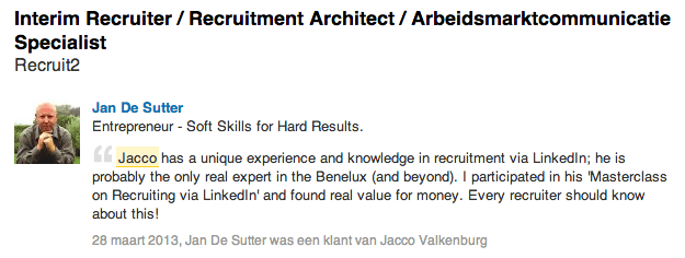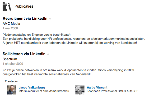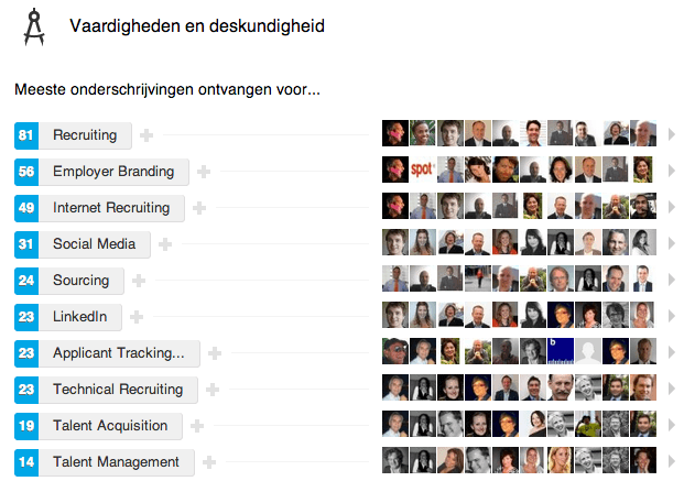 Aanbevelingen, cruciaal, want die worden gelezen en hoog gewaardeerd, springen nog meer in het oog. Degene die deze geeft staat met foto en functietitel nu pontificaal vermeld! Doe er je voordeel mee. Vraag erom, persoonlijk en bespreek samen welk aspect van je vakmanschap je belicht wilt zien. Zorg voor minstens drie aanbevelingen (referenties), van oud-collega’s, klanten of voormalige werkgevers, die je profiel versterken en beter vindbaar maken.