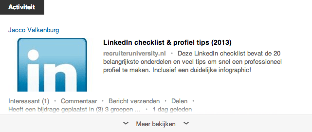Het resultaat is wat andere gebruikers als eerste zien op LinkedIn:
