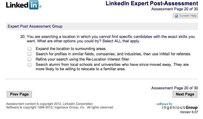 Hier is een screenshot van een van de vragen om een indruk te krijgen van het niveau van deze assessment: